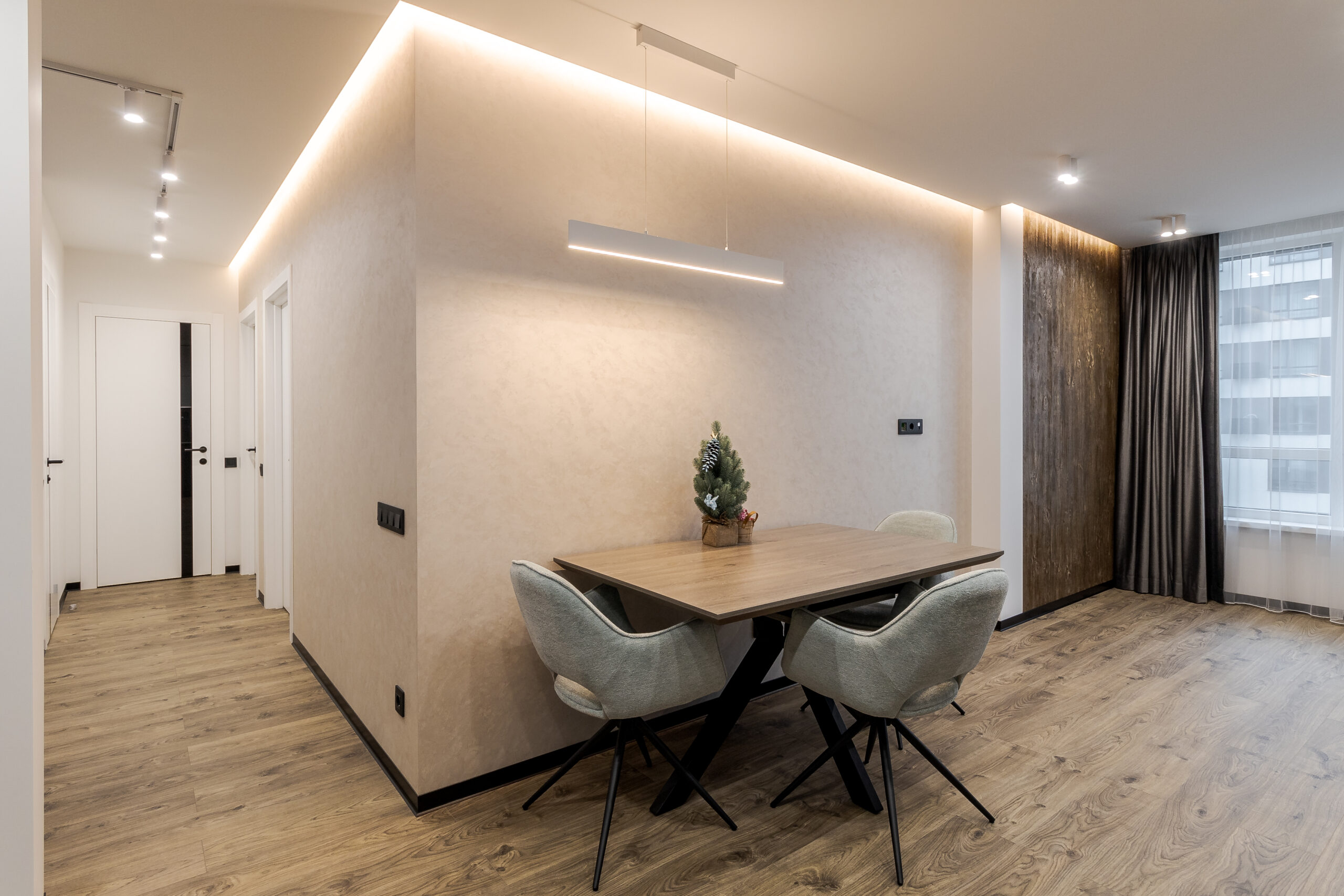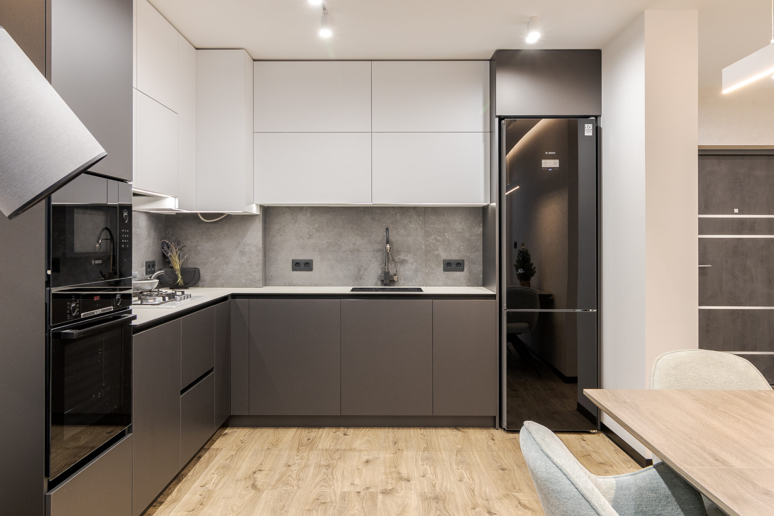 Результат: сучасна функціональна квартира, де стриманість форм, благородність матеріалів та продумана система освітлення формують комфортний та сучасний простір для життя.