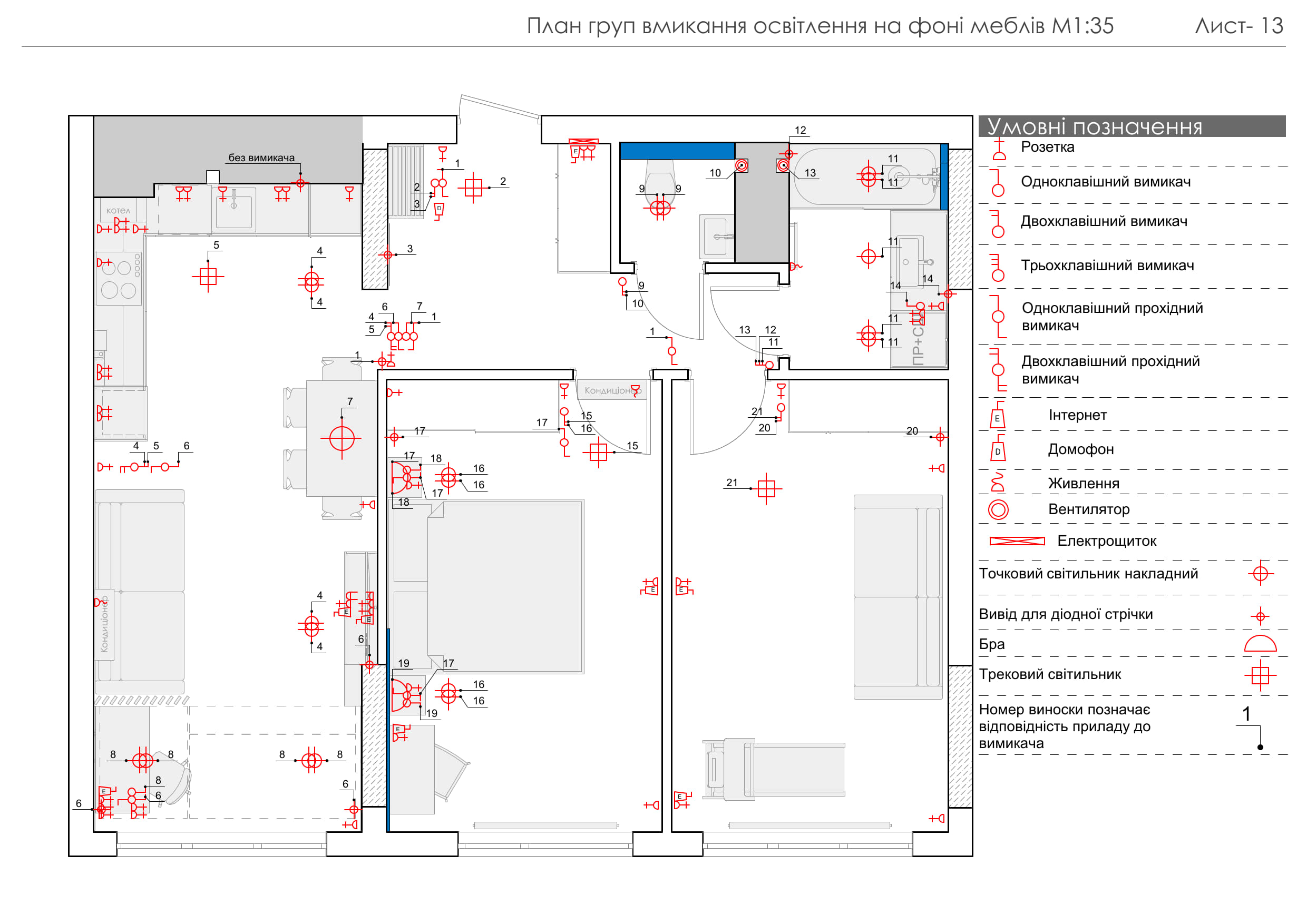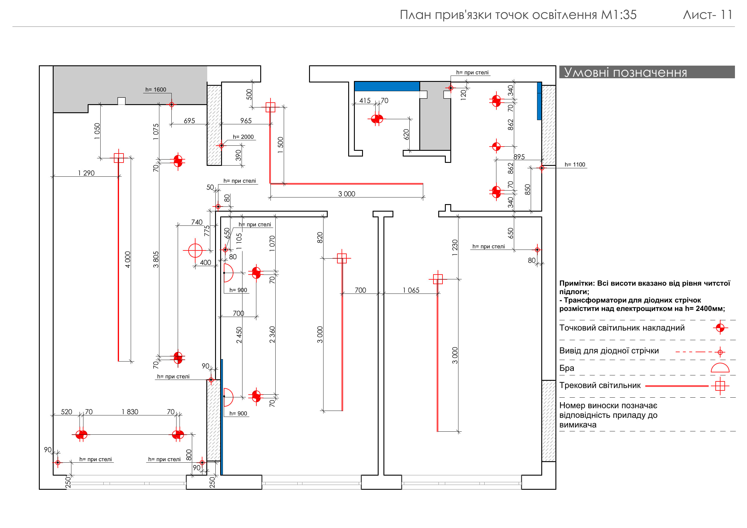 Багаторівнева система освітлення включає в себе трекові світильники, приховану LED-підсвітку, настінні бра та підсвітку дзеркал, створюючи різні сценарії освітлення.